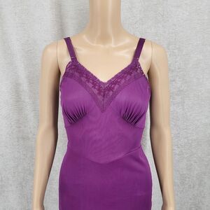 Vintage Slip Dress Upcycled Dyed Eggplant Purple with Lace and Embroidery Detail