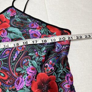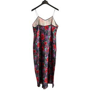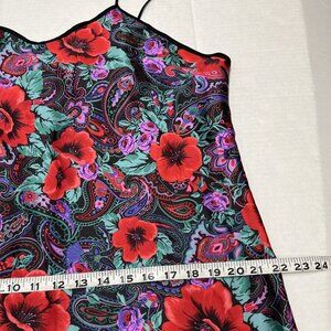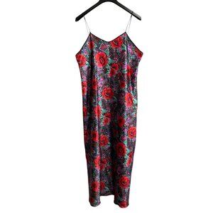 Vintage Slip Dress Womens L Red Satin Floral Maxi Paisley Nightgown 90s Y2K