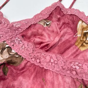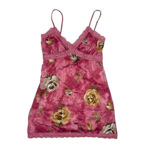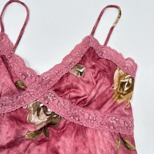 Vintage Slip Large Pink Floral Lace Trim Intimate Dress Mini Sleepwear Babydoll