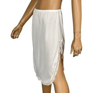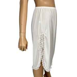 Vintage Slip Skirt Womens M White Lace Deep Slits Silky Nylon Lingeriecore Fairy