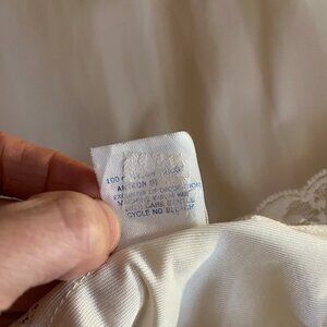 Design: Thin pullover slip with adjustable straps. Lace trim.