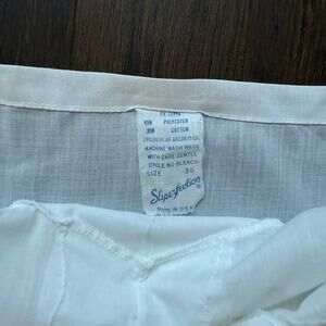 Vintage Sliperfection white slip dress with classic 1950s-inspired silhouette. Made in the USA from a soft 65% polyester / 35% cotton blend for a lightweight and breathable feel. Features adjustable shoulder straps, tailored seaming at the bust, and a straight hemline—perfect as a layering piece or loungewear.