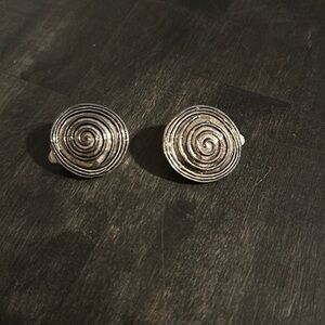 Vintage Sliver Tone Artsy Swirl Clip On Earrings