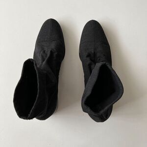 Ralph Lauren boots with textile/fabric slouchy ankle upper. Almond toe. Low block heel. In excellent condition with small area of spots on fabric, pictured. Normal gentle wear to soles. Size 9 women's