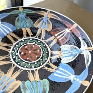 Vintage Slovac Redware Pottery Signed Parikrupa Plate Dancing Girls Woman 9 1/2"
