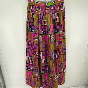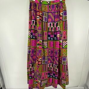 Vintage Small 70s Wrap Mod Geometric Print Long Maci Skirt