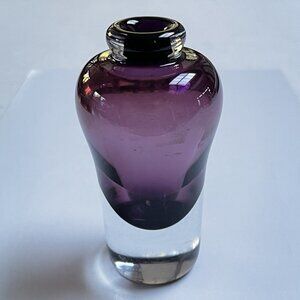 Vintage Small Art Glass Amethyst Bud Vase Signed 1986 Decor Purple