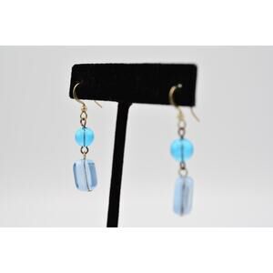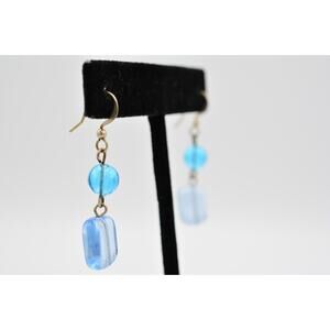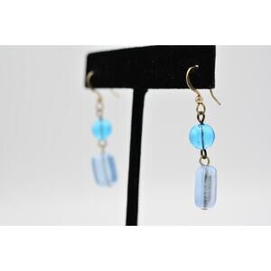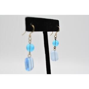 Vintage Small Beaded Dangle Earrings Multi-Tone Blue Lucite Silver Tone 1990s 9D