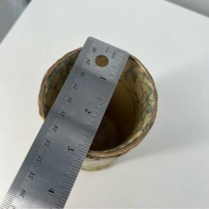 Vintage Small Blue Yellow Spongeware Stoneware Pitcher Vase Ceramic Piece
