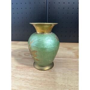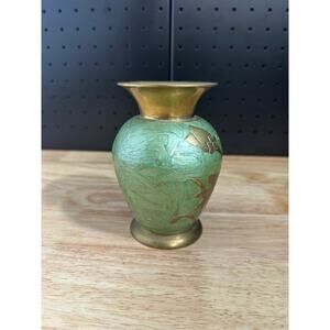 Vintage Small Brass vase Painted Floral Unbuffed Collectors Item