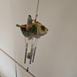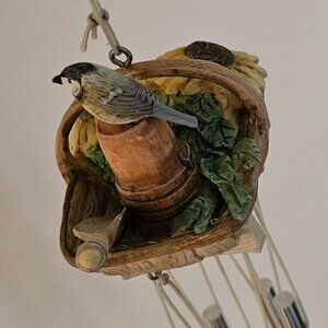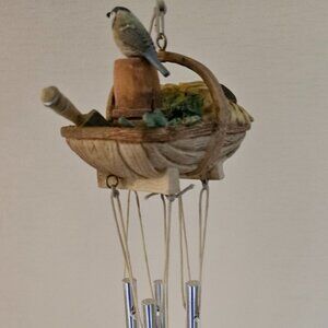 Vintage Small Ceramic Wind Chime with Bird Flower Garden Basket. Gently used indoors and then stored awhile. Excellent preowned condition.