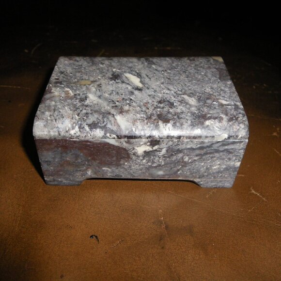 Lovely little stone box measures approximately 3 1/4" x 2 1/4" and is 1 1/4" tall.