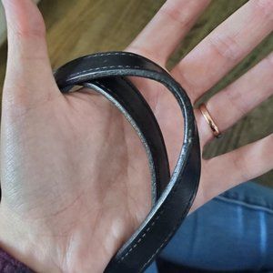 please note this is a vintage bag, it has natural wear. see corners,straps and the leather trim would look great with a condition.