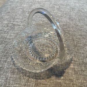 Vintage Small Duncan &Miller Clear Sandwich Glass 4 1/2” tall Basket