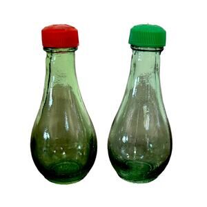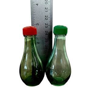 Vintage Small Green Empty Glass Bottle Collectors Salt Pepper Shakers Unique
