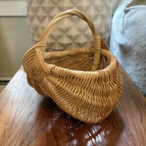 Vintage Small Hand Woven Buttocks Basket Egg Gathering God's Eye Primitive 8"