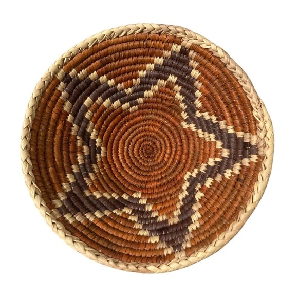 Vintage Small Hand Woven Star Coil Basket Bowl Round Natural Grass