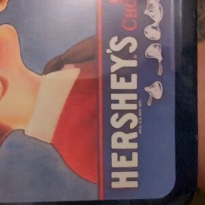 Vintage Hershey's Milk Chocolate Kisses tin lunchbox. Features a charming illustration on the front.