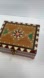 Colorful multiple types of wood inlay into a geometric design. Small musical movement inside. Not sure what song it is playing.