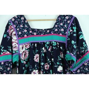 Vintage Small MuMu Caftan Dress Cottagecore Peasant Floral Midi Western Cotton