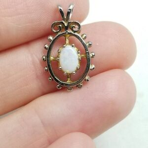 Vintage Small Oval Created White Opal Pendant / Charm, October Birthstone Estate