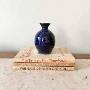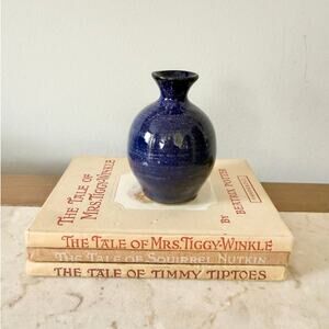 Vintage Small Round Cobalt Blue Studio Pottery Bud Vase Handcrafted Miniature