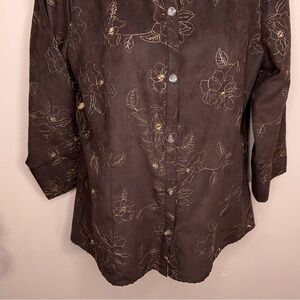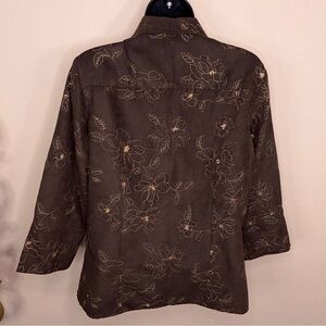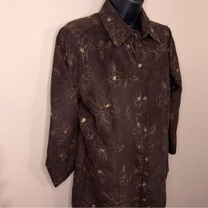 Vintage Small Sag Harbor Brown Embroidered Button Up Top 3/4 Sleeve Floral