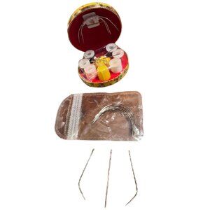 Vintage Susan Bates Sewing kit with needles, pins, thread, pin cushion, thread and thimble.