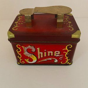 Vintage Small Shoe Shine Tin with Brush, Cloth, Shoe Horn, & Polish