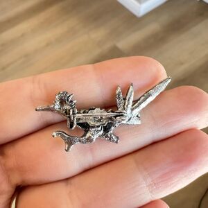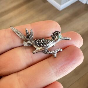 Vintage Small Silver Tone and Turquoise Bird Road Runner Brooch Pin
