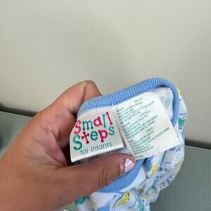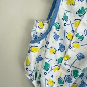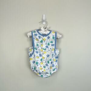 Vintage Small Steps Toy Horse Romper. Baby toddler boy size 18 months. Adorable one piece sun suit outfit for summer! White with pastel yellow, green, and blue stick horses. I love the unique cut of this with the elastic on the sides! Great condition with no flaws noted.