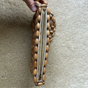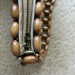 Vintage Small Tan Wooden Bead Japanese Purse - Made In Japan - GUC* (read)