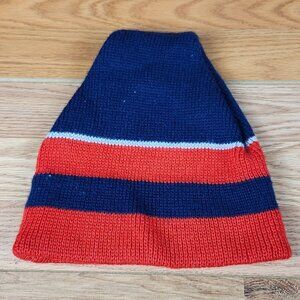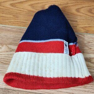 Vintage Smiley Wool Beanie Hat Red/Blue/White Striped Winter Cap Ribbed Band