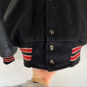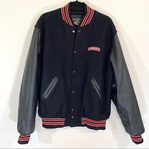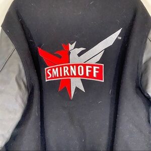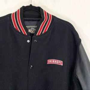 Vintage Smirnoff Vodka Leather Sleeve Varsity Letterman Bomber Jacket Red Large