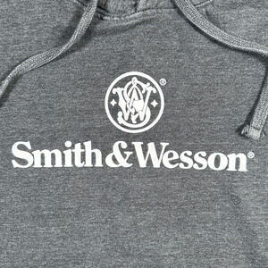 Vintage Smith Wesson Sweater Adult MEDIUM Gray Hoodie Firearms Promo Logo Y2K