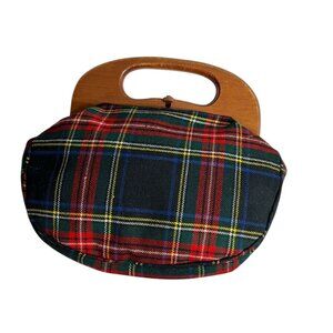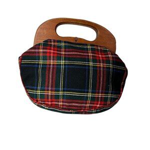 Vintage Smith's 1960's Red Tartan Plaid Bermuda Bag Cedar Wood Handle
