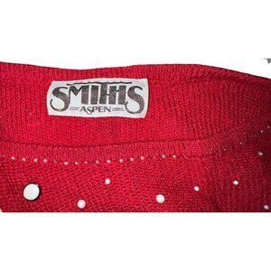 Make a bold statement with this unique vintage Smiths Aspen sweater. The vibrant red knit is adorned with whimsical white hearts and intricate beadwork, creating a charming look that stands out. Ideal for adding flair to any wardrobe while offering comfort and warmth.