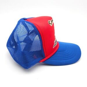 Vintage Smokin Snapback Mesh Trucker Rope Hat Red Blue Cap Trucking Puff Paint