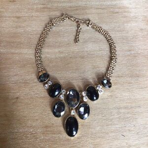 Vintage Smoky Gray Rhinestone Chandelier Statement Choker Necklace