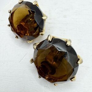 Vintage Smoky Topaz Amber Root beer Glass Large Headlight Clip On Earrings