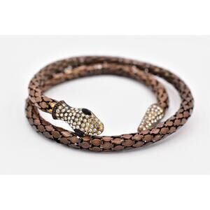 Vintage Snake Armband Armlet Wrap Bracelet Brown Mesh Rhinestone Head Coil BinO