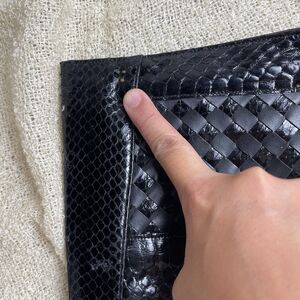 Vintage Snake Skin Black Clutch Strapped Bag Folded String Black intrecciato