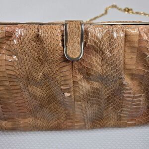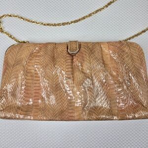 Vintage Snake Skin Leather Clutch Purse Gold Chain Strap
