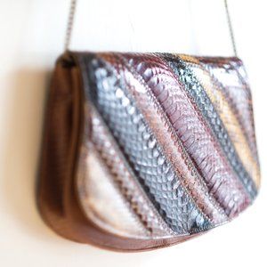 Absolutely beautiful Bags by Supreme vintage purse made of real multi-colored snakeskin (in MINT condition) with a 16 inch long chain strap. The same snakeskin pattern is on both the front and back, which is pictured but hard to tell because they're identical.