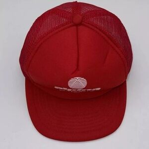 Vintage SnapBack Mesh Back Ad Trucker Hat Cap Red Alpina Ski Boots Skiing EUC