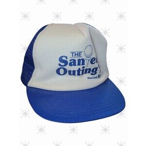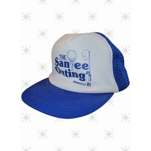 Vintage Snapback HOECHST Trucker Hat Cap Blue White Logo 80S Golf Fishing