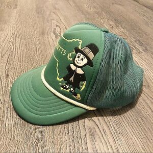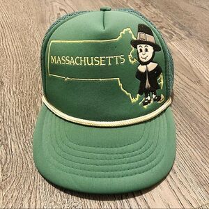 Vintage Snapback Rope Hat Cap Trucker Massachusetts State Pilgrim Green Mesh