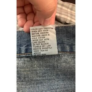 There is some wear on the bottoms of the jeans, adding to their unique character.