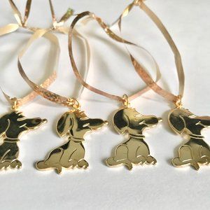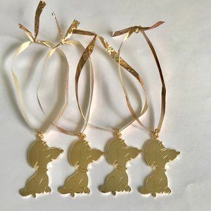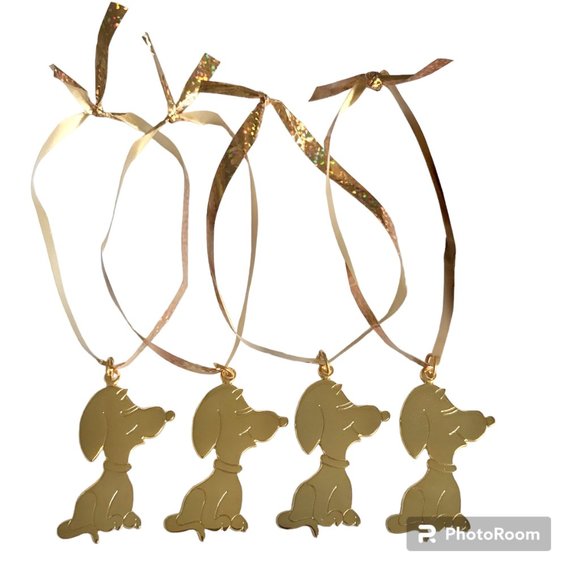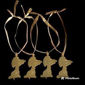 with this set of four gold-tone metal Snoopy dog ornaments.