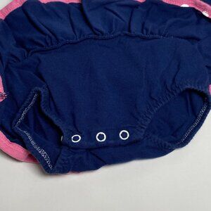 Vintage Snoopy Happy Dancing Dress Bodysuit Size 12 Months Blue w Pink Trim